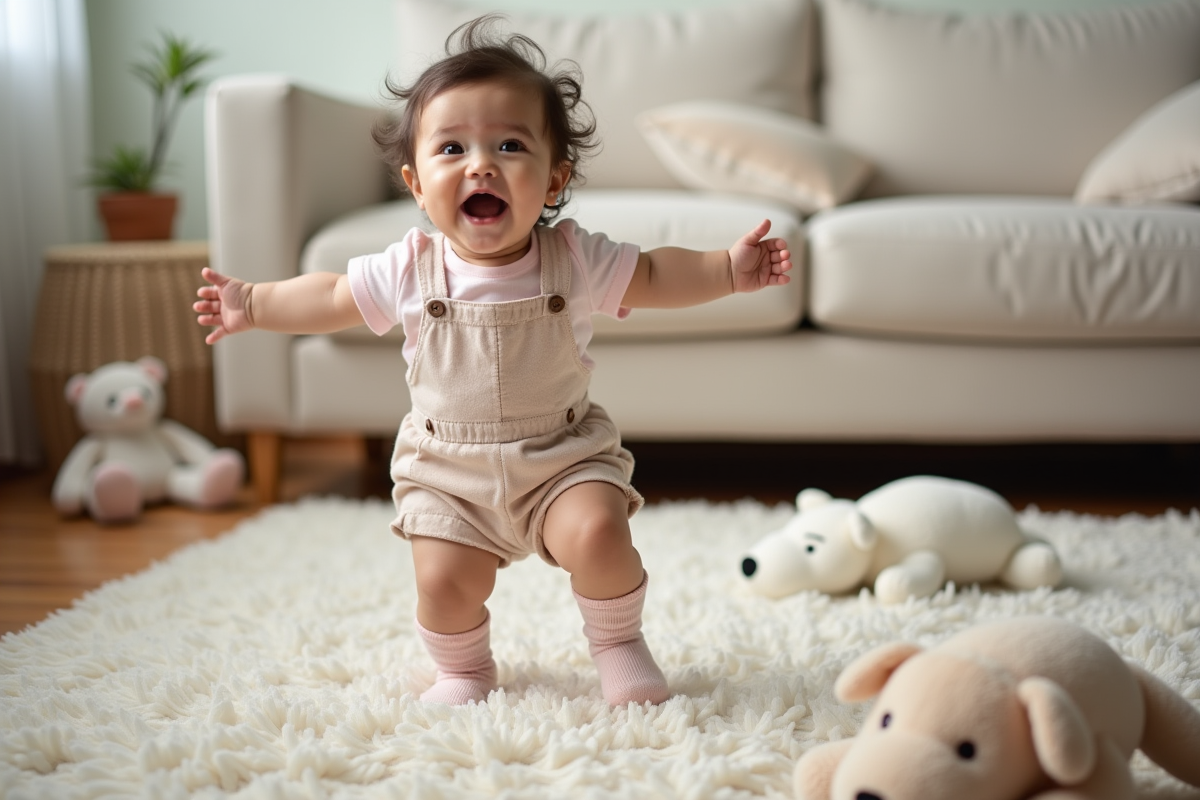 Laissez-lui le temps d’apprivoiser chaque étape : ramper, marcher à quatre pattes, se hisser, se tenir debout, puis tenter de marcher. Pas besoin de précipiter les choses. Certains enfants s’élancent vite, d’autres profitent plus longtemps du sol et de ses secrets.
